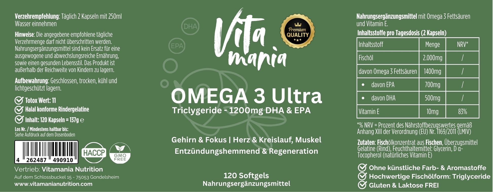 Unseren Omega 3 Special 2000 - Triglyceride 18/12 Softgels werden Hergestellt aus hochwertigem Fischöl in bester Qualität und umhüllt von Halal Gelatine, bieten sie dir die essentiellen Fettsäuren, die dein Körper braucht. Ideal für einen modernen, aktiven Lebensstil. Jede Softgel ist eine Quelle der Kraft und des Wohlbefindens.