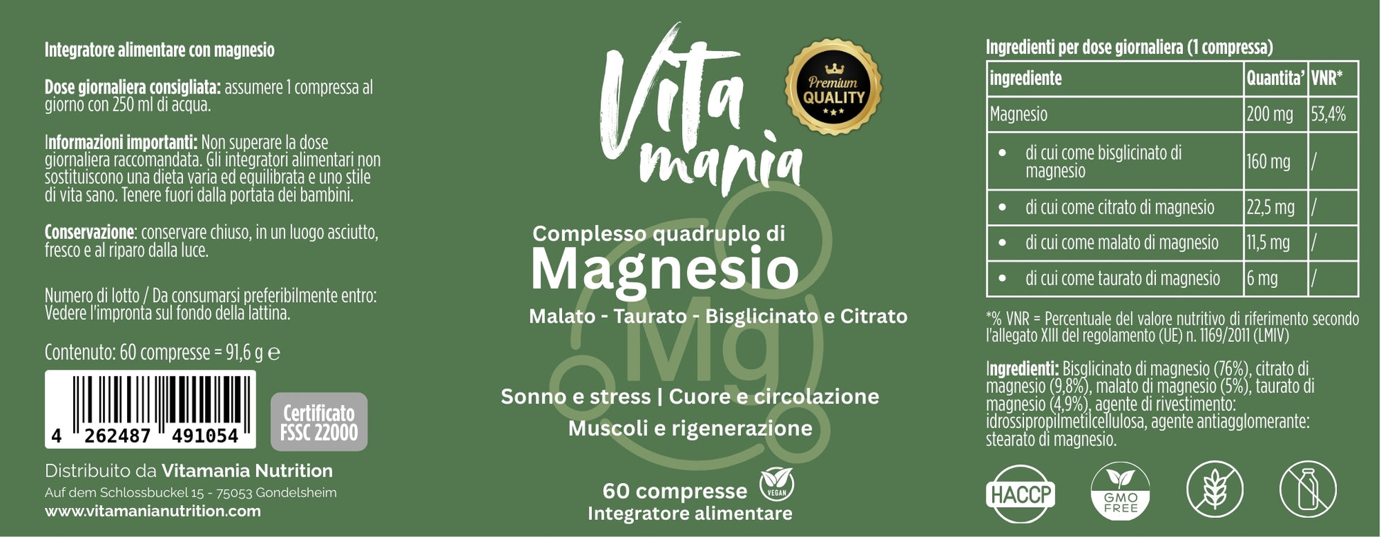 ✔Con magnesio - malato, taurato, bisglicinato e citrato