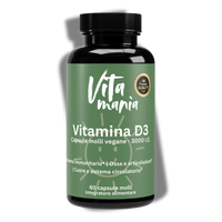 Vitamania - Vitamina D3 3.000 UI vegana contiene 75 µg di colecalciferolo (vitamina D3) derivato dalle alghe, che contribuisce al mantenimento di ossa e denti normali e al normale funzionamento del sistema immunitario.