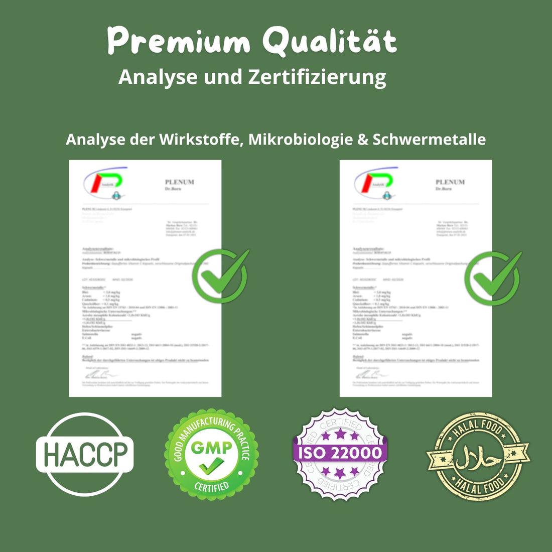 Alle unsere Produkte werden von unabhängigen Labors analysiert. Jede Charge wird auf Schwermetalle, Verunreinigungen und Schadstoffe geprüft.