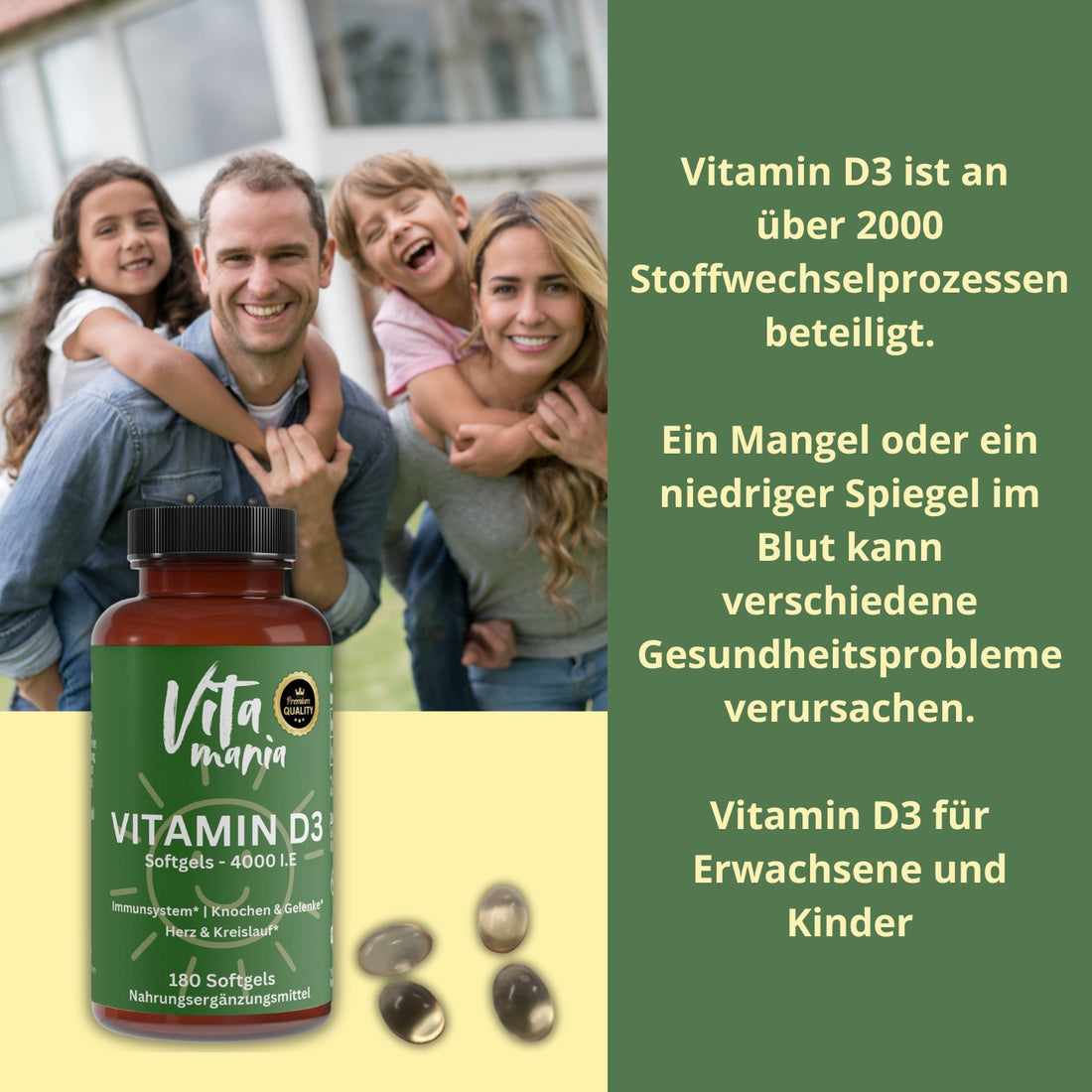 Vitamin D3 4000U.I. ist ein beim Bundesamt für Verbraucherschutz und Lebensmittelsicherheit (BVL) registriertes Nahrungsergänzungsmittel und verfügt über die internationale HACCP-Zertifizierung, die den Gehalt der auf dem Etikett angegebenen Wirkstoffe überprüft.